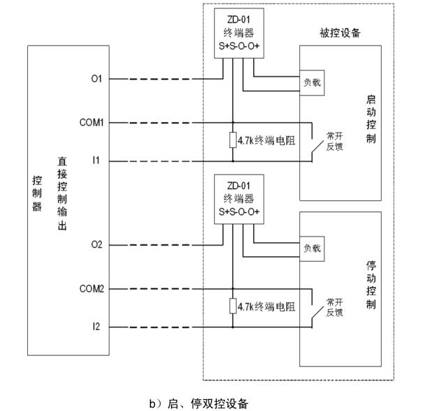 O、COM:組成直接控制輸出端,通過ZD-01終端器與負(fù)載連接,O為輸出端正極,COM為輸出端負(fù)極,啟動后O與COM之間輸出DC24V。
