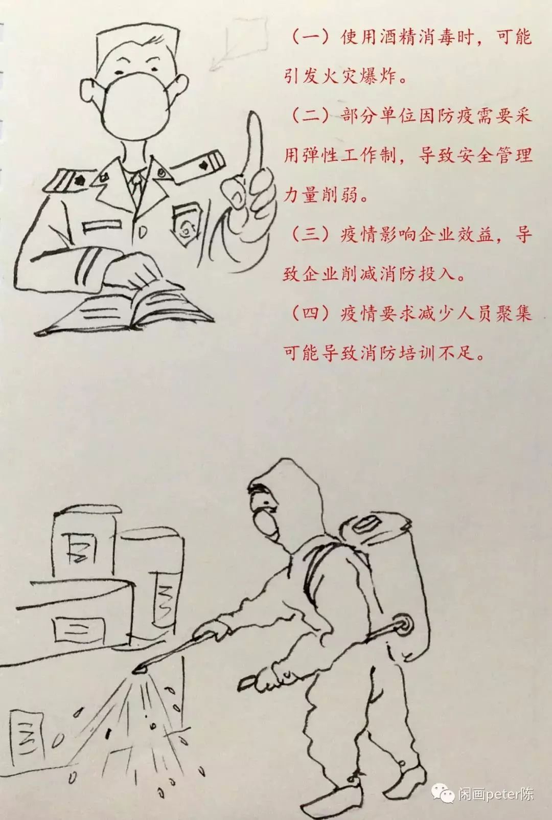 各企業(yè)、各單位值班人員要在崗在位,做好防火檢查、巡查,確保無違規(guī)用火用電、無停用消防設(shè)施、無脫崗漏崗行為。下班后要及時(shí)關(guān)閉電源、燃?xì)夤艿篱_關(guān)等。值班人員要加強(qiáng)夜間防火巡查。生產(chǎn)醫(yī)療防護(hù)用品的企業(yè),要強(qiáng)化火災(zāi)防范措施,確保生產(chǎn)期間消防安全。各定點(diǎn)醫(yī)療機(jī)構(gòu),要加強(qiáng)對病房樓、發(fā)熱門診樓、住院部、餐廳、疏散通道等重點(diǎn)部位和持續(xù)運(yùn)轉(zhuǎn)的用電、用氧等設(shè)備的檢查、巡查。