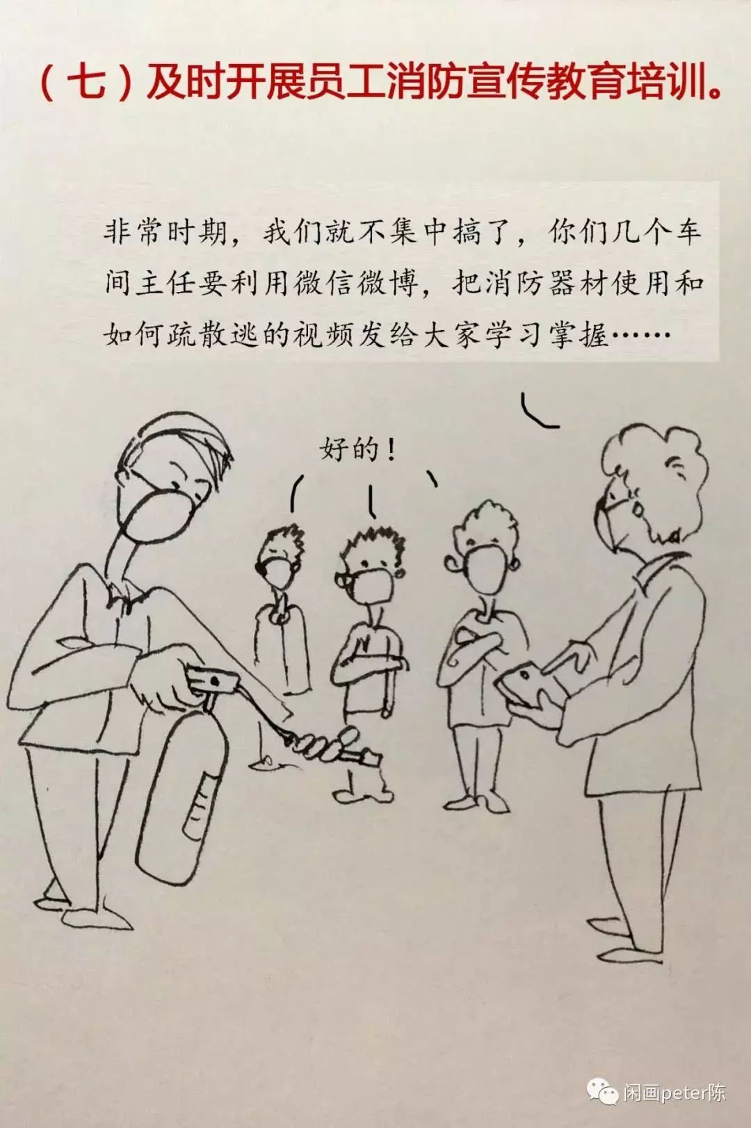 各企業(yè)、各單位要及時(shí)組織消防安全培訓(xùn),使每名員工做到“一懂三會”(即:懂本場所火災(zāi)危險(xiǎn)性,會報(bào)火警、會撲救初起火災(zāi)、會疏散逃生)。換崗、新入職員工必須經(jīng)過消防安全培訓(xùn)方可上崗。消防控制室值班人員及從事電焊、氣焊的人員,必須經(jīng)培訓(xùn)考試合格持證上崗。要在公告欄、過道等顯著位置張貼消防宣傳畫,利用電子屏、員工微信群廣泛開展消防宣傳提示。