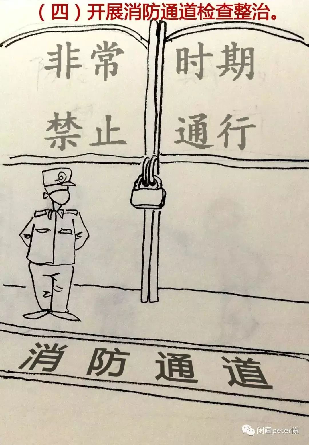 各企業(yè)、各單位要對安全出口、疏散通道、消防車通道等開展一次系統(tǒng)檢查,確保暢通。嚴(yán)禁在樓梯間、疏散通道內(nèi)停放或?yàn)殡妱榆嚦潆姟σ蚍酪咝枰扇〉姆忾]式管理點(diǎn),要對采取的封閉措施和配套制度進(jìn)行核查,確保在發(fā)生火災(zāi)時(shí)不影響人員疏散和消防車順利通行。