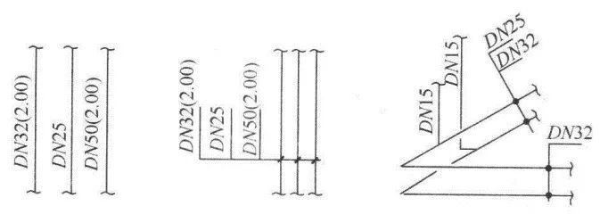 6、水平管道的規格宜標注在管道的上方;豎向管道的規格宜標注在管道的左側。雙線表示的管道,其規格可標注在管道輪廓線內。