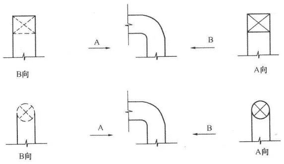5、矩形風管(風道)的截面定型尺寸應以“A×B”表示。“A”應為該視圖投影面的邊長尺寸,“B”應為另一邊尺雨。A、B單位均應為mm。