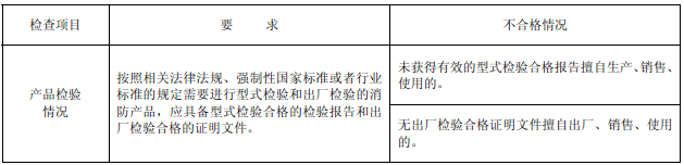 消防產品的現場檢查主要包括市場準入檢查和產品質量現場檢查兩類。顧名思義,市場準入檢查是針對產品是否符合國家有關市場準入規定所進行的檢查。而產品質量現場檢查則是針對產品的一些關鍵性能,在現場采用相應檢查方法進行的產品質量檢查。當市場準入檢查不合格時,可不繼續進行產品質量現場檢查而進行判定。