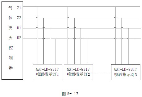 海灣GST-LD-8317氣體釋放燈布線要求:信號總線 Z1、Z2 采用阻燃RVS 雙絞線,截面積≥1.0mm2;電源線D1、D2 采用阻燃BV 線,截面積≥1.5mm2。
