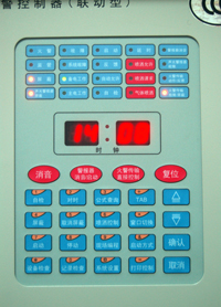 警報器啟動燈:紅色,有警報器處于啟動狀態時,此燈點亮,當停動警報器或警報器消音后,此燈熄滅。