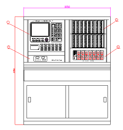琴臺式控制器外形尺寸(長×寬×高,單節):555mm×863mm(包括臺面)×1273mm