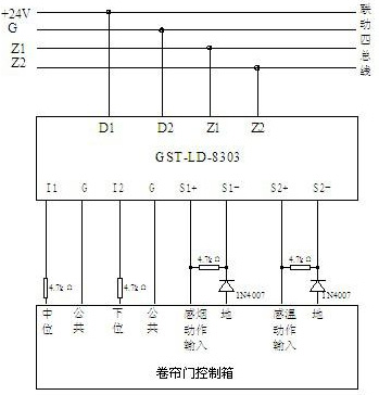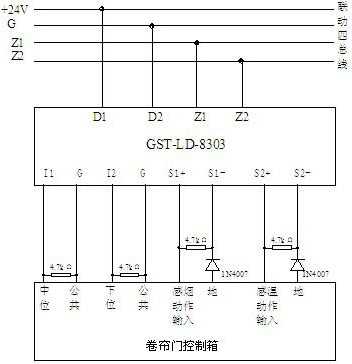 圖13 GST-LD-8303模塊與防火卷簾門電氣控制箱(標準型)接線示意圖