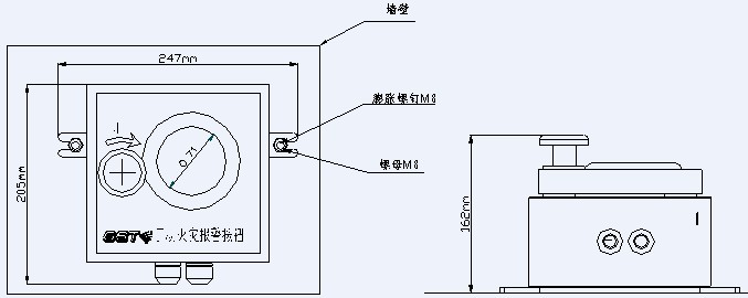 海灣常用防爆場合的手動報警按鈕型號有J-SAF-GST9211(Ex)和J-SAM-GST9116。海灣防爆手動按鈕在室外安裝時可采用立柱和壁掛安裝兩種形式,本文將介紹兩種海灣防爆手報按鈕室外安裝配套型號及示意圖。