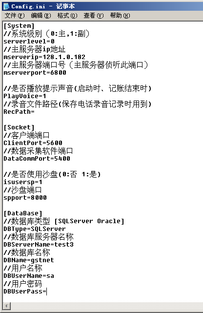 配置后臺控制軟件后打開c:program files GSTNet_ClientMaintain目錄下的配置文件config.ini,其中的設置項有: