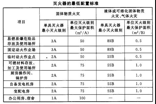 (2)滅火器的最低配置標準應符合下表規定。
