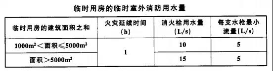 5、臨時用房的臨時室外消防用水量不應小于下表規定。