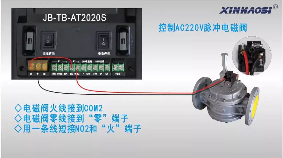 對于外控設備,我們控制器上都有無源開關量的接線端,按照下圖所示方式接線即可(其他總線制控制器請參照JB-TB-AT2020S接線)。