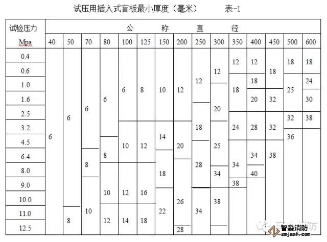 5.5 試壓盲板的選取,根據壓力及管徑按表-1選取。