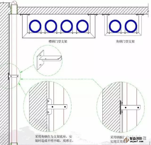 關(guān)鍵工序:墻面管道支架底座應(yīng)采用鋼板底座。