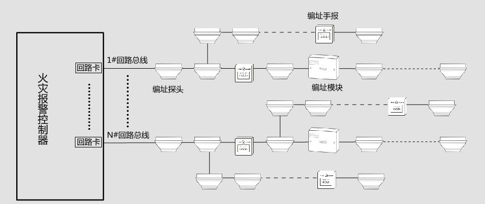 手動編址:火災觸發單元為智能單元,需要人工食用電子編碼器設置單元網絡地址,工作量大且易出錯;