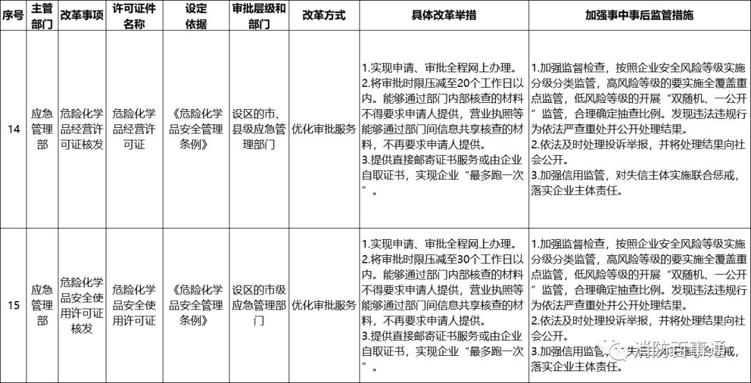 對于實行優化審批服務的改革事項,應急管理部有關司局和有關省級應急管理部門要嚴格落實《清單》的具體規定,承接下放的審批權限,縮短審批時限,壓減不必要的證明材料,結合本地區實際進一步探索優化審批服務的新舉措。