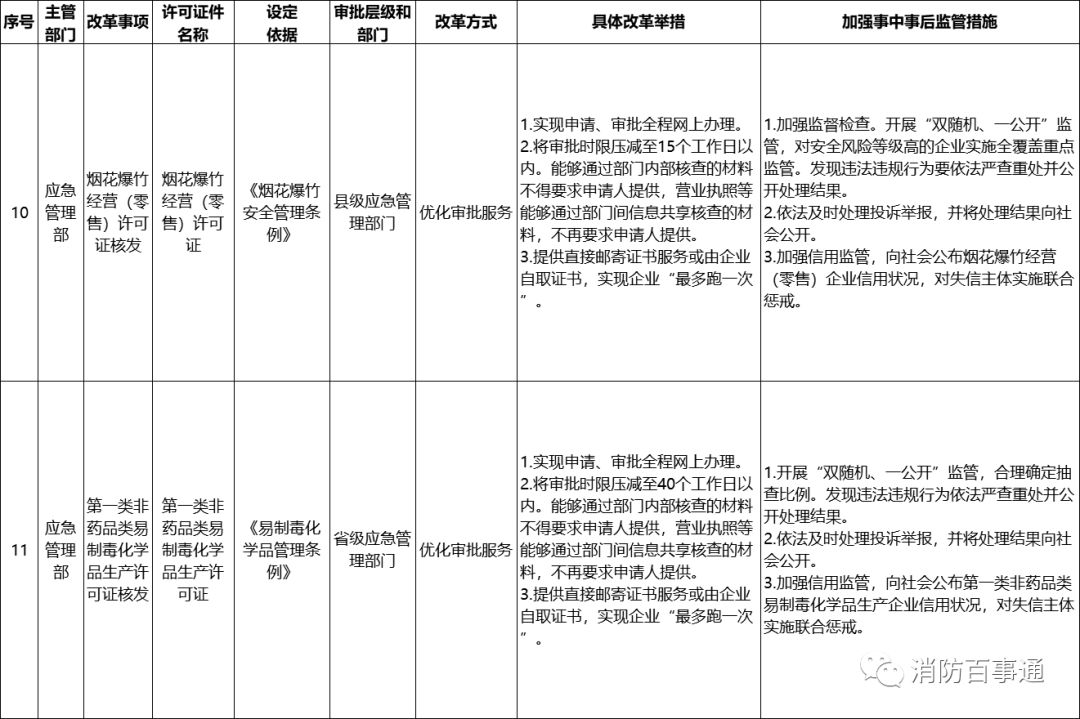 《通知》涉及的應急管理部門、消防救援機構行政許可改革事項共16項。其中,消防技術服務機構資質審批事項改革方式為“直接取消審批”;公眾聚集場所投入使用、營業前消防安全檢查事項改革方式為“實行告知承諾”;其他14項改革方式為“優化審批服務”。