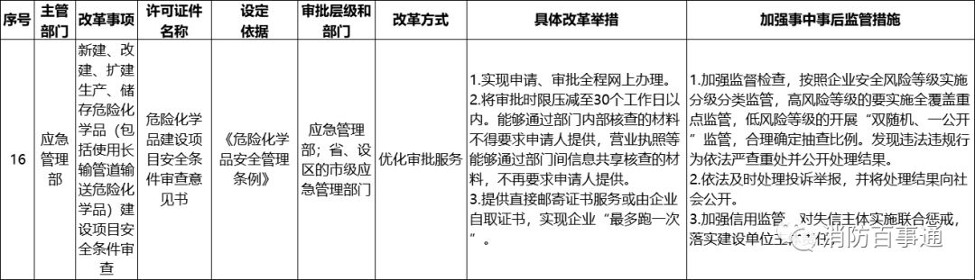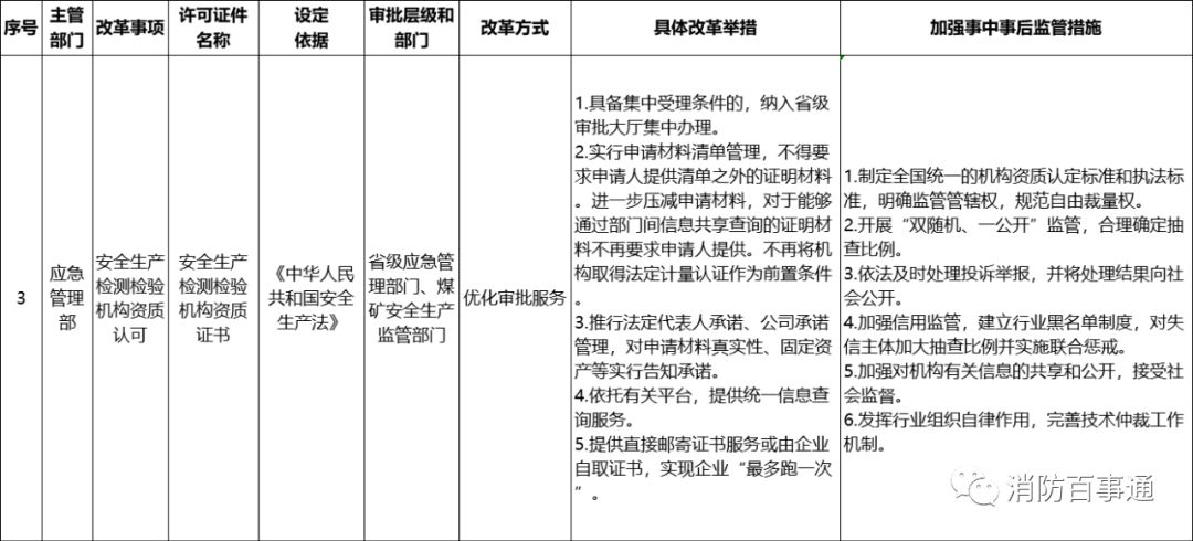 (一)公布改革事項清單。根據《通知》要求,應急管理部對上述16項改革事項,制定并公布《應急管理部“證照分離”改革全覆蓋試點事項清單(中央層面設定)》(見附件,以下簡稱《清單》)。有關省級應急管理部門、消防救援機構要對照《清單》,明確本單位、本地區實施的許可事項清單,并在本單位官方網站公布。