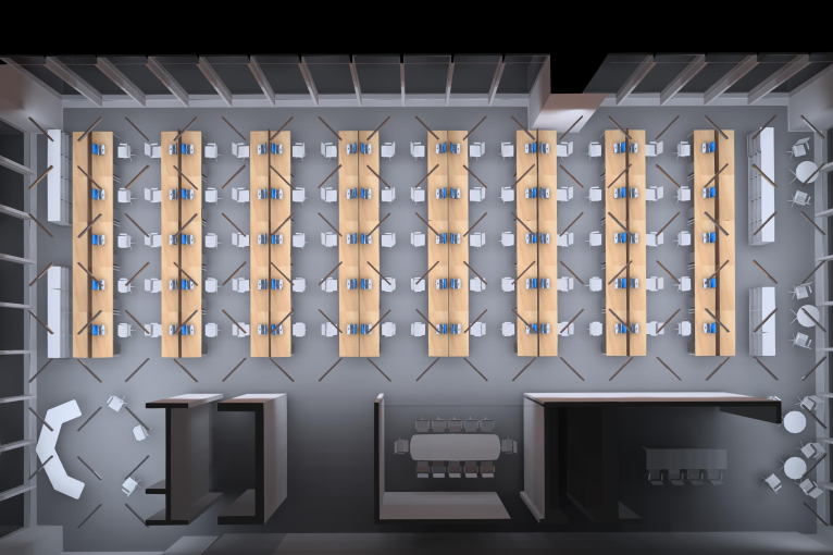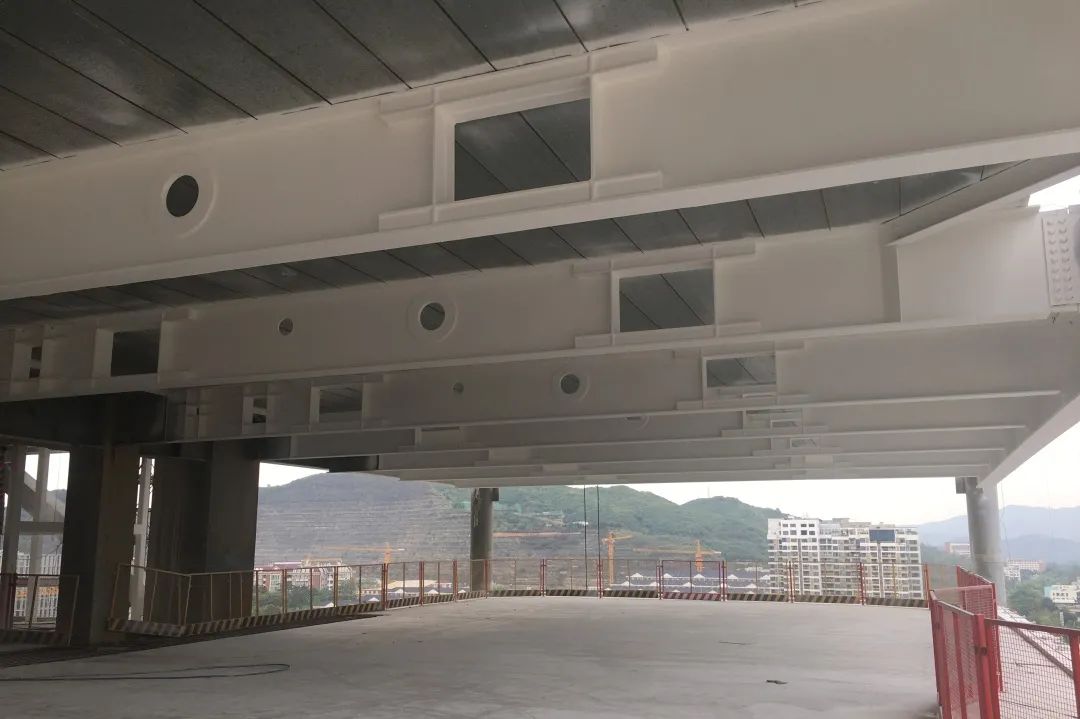 由于采用大跨度無柱空間和無吊頂設(shè)計,