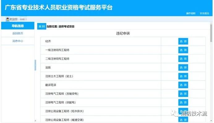 2.選擇需辦理業務的考試項目,點擊【選擇】按鈕進入。