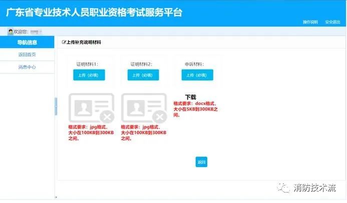 4.如辦理的業務需上傳補充材料,則點擊【上傳材料】按鈕,進入上傳材料頁面,按照類型、格式、文件大小要求,上傳。