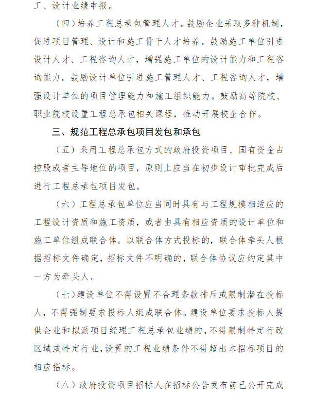 2、采用工程總承包方式的政府投資項目、國有資金占控股或者主導地位的項目,原則上應當在初步設計審批完成后進行工程總承包項目發包。