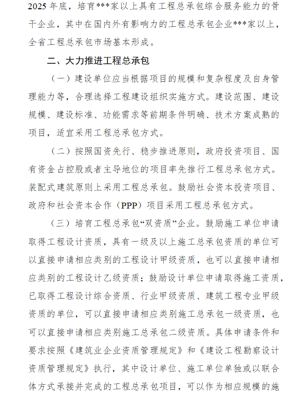• 2025年底,全省工程總承包市場基本形成。