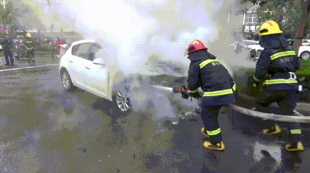 抵達現場后,消防救援人員發現一輛白色轎車停在非機動車道上,轎車車頭正在猛烈燃燒,駕駛員已經棄車離開。消防救援人員立即出水進行撲救,10分鐘左右大火被成功撲滅。