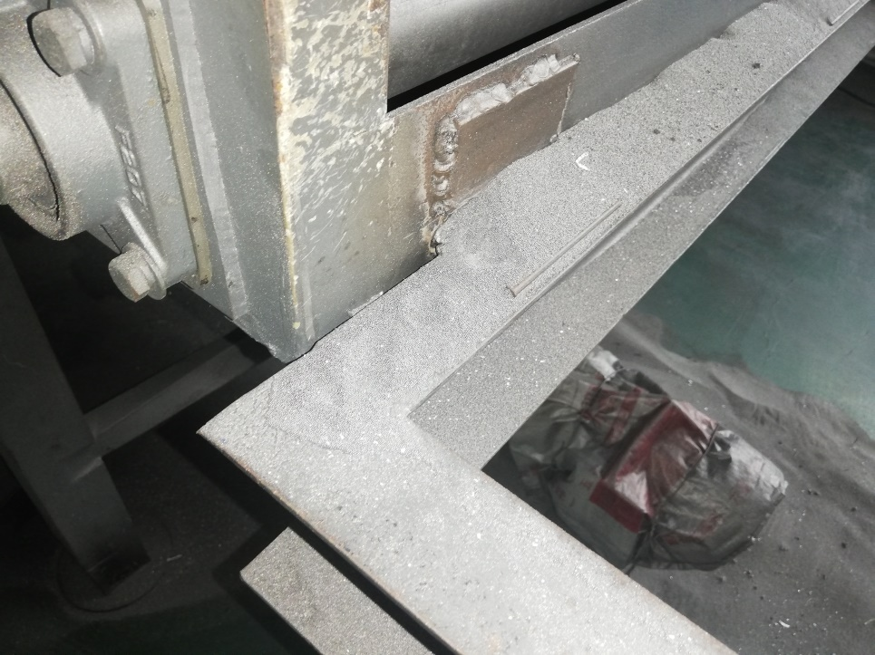 4、生產(chǎn)車間西北側(cè)拋丸機(jī),現(xiàn)場(chǎng)鋼丸未及時(shí)清理。