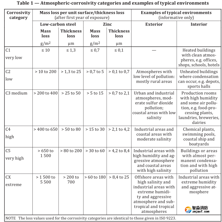 等級劃分:共6類(C1~C5+CX),字母C是“Corrosivity(腐蝕性)”的縮寫;