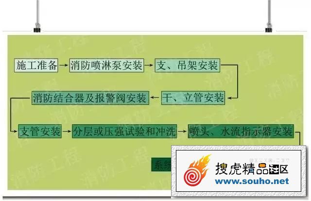 對于自動噴水滅火系統的施工過程,監理應嚴格要求按以下工藝流程進行: