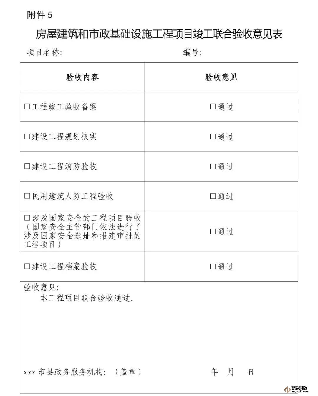 第十五條 對聯合驗收事項全部通過的工程項目,由綜合窗口通知建設單位領取《房屋建筑和市政基礎設施工程項目竣工聯合驗收意見表》(以下簡稱《聯合驗收意見表》,見附件5)。工程竣工驗收備案與聯合驗收合并辦理,建設單位持《聯合驗收意見表》可依法辦理不動產登記、房屋銷售等后續手續。