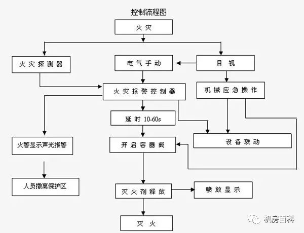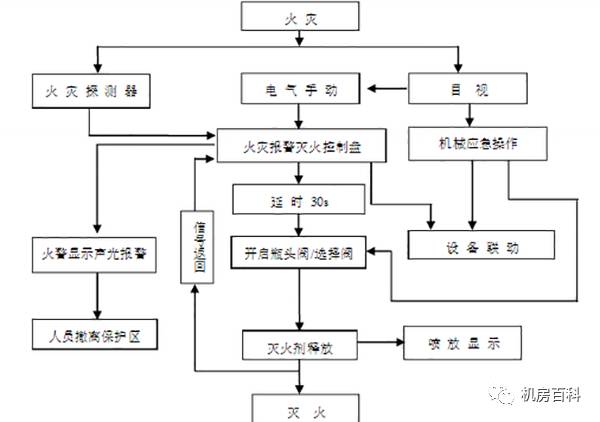 7)滅火系統設自動控制、手動控制和機械應急操作,手動控制裝置、手動與自動轉換裝置設在防護區內和防護區疏散出口邊便于操作的地方,機械應急操作裝置設在儲瓶間內。