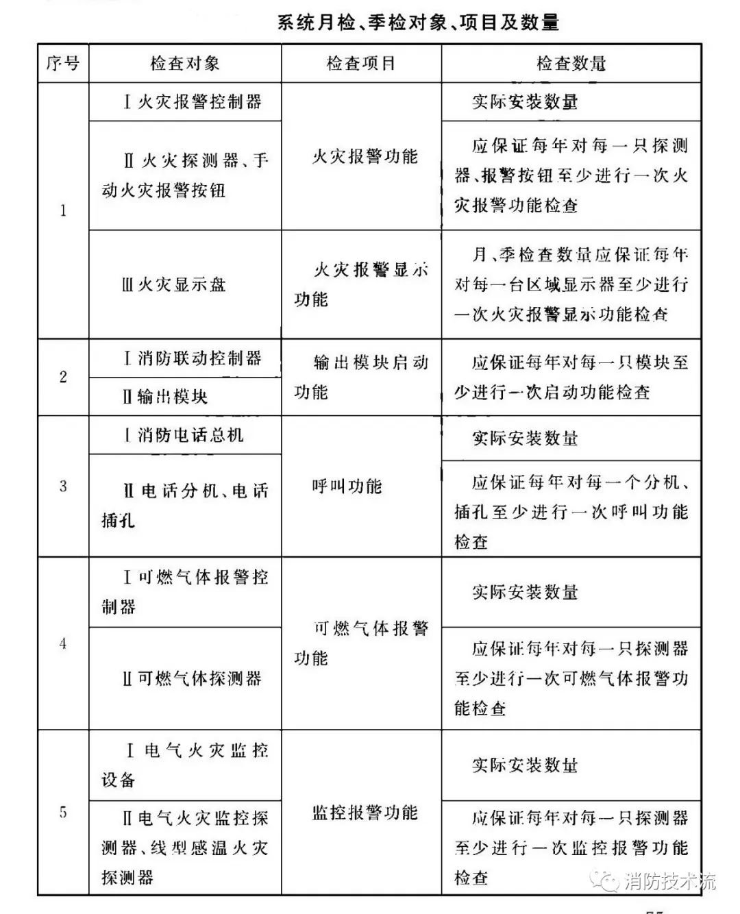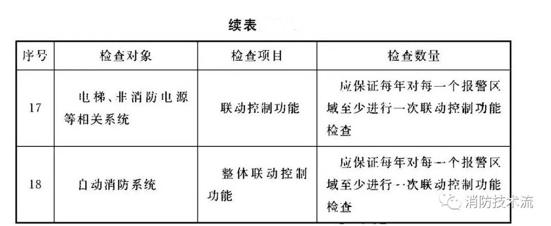 根據《 火災自動報警系統施工及驗收標準》要求,每年應按表中規定的檢查項目、數量對系統設備的功能、各分系統的聯動控制功能進行檢查。